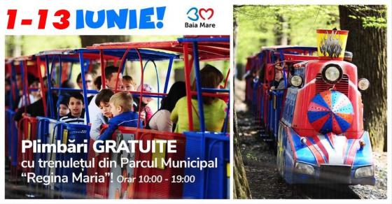 La inițiativa primarului Cătălin Cherecheș, Administrația Publică Locală a Municipiului Baia Mare oferă copiilor un dar inedit cu ocazia Zilei Internaționale a Copilului. Aceștia vor avea oportunitatea de a călători gratuit cu trenulețul din Parcul Regina Maria, în perioada 1 - 13 iunie, între orele 10:00 – 19:00