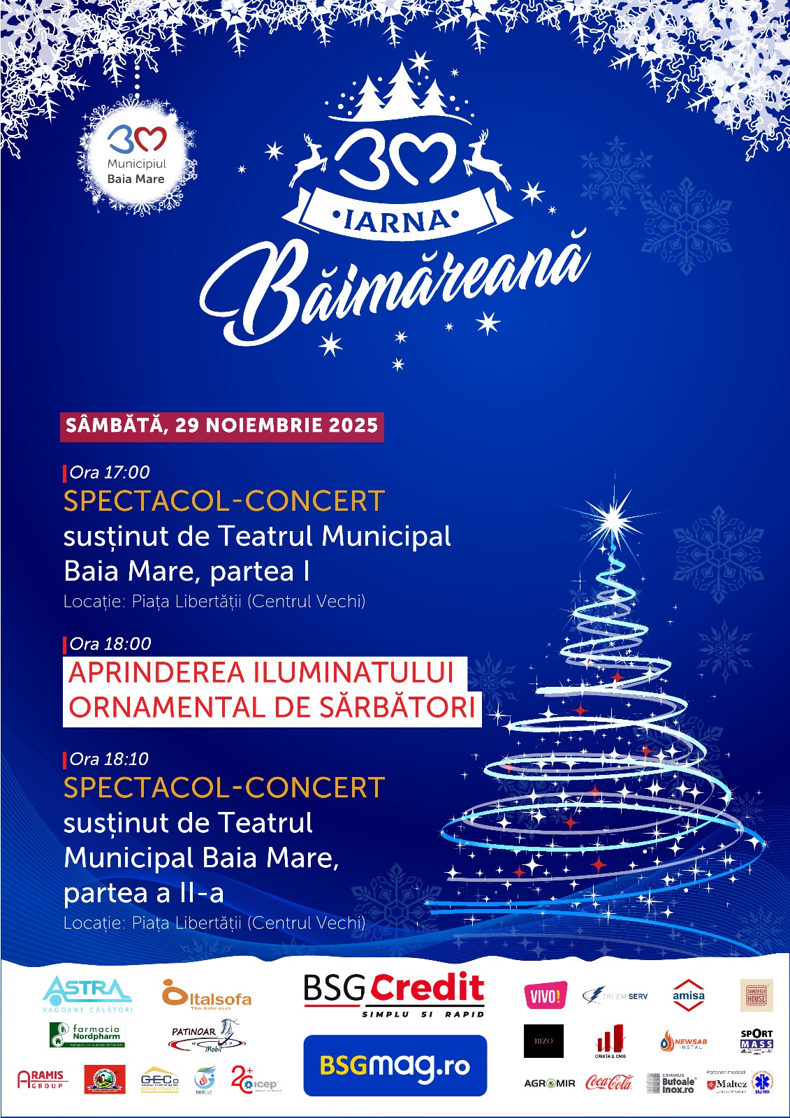 Baia Mare deschide oficial ''Iarna Băimăreană 2025'' sâmbătă, 29 noiembrie