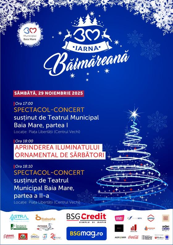 Primăria Municipiului Baia Mare anunță debutul oficial al programului „Iarna Băimăreană 2025”, unul dintre cele mai așteptate momente ale sezonului de sărbători. Evenimentul de deschidere va avea loc sâmbătă, 29 noiembrie 2025, în Piața Libertății (Centrul Vechi), unde băimărenii sunt invitați să participe la o seară festivă dedicată comunității.